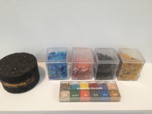 While adopting the practice of photographing food, I went to see Ukeles’ Maintenance Art exhibit at the Queen’s museum and found these standard colors for glassphalt, the processed pieces of recycled glass that are added to asphalt. Inspired by the process of transformation that they represented, much like the consumption of food, I applied my color palate to an image of glassphalt.