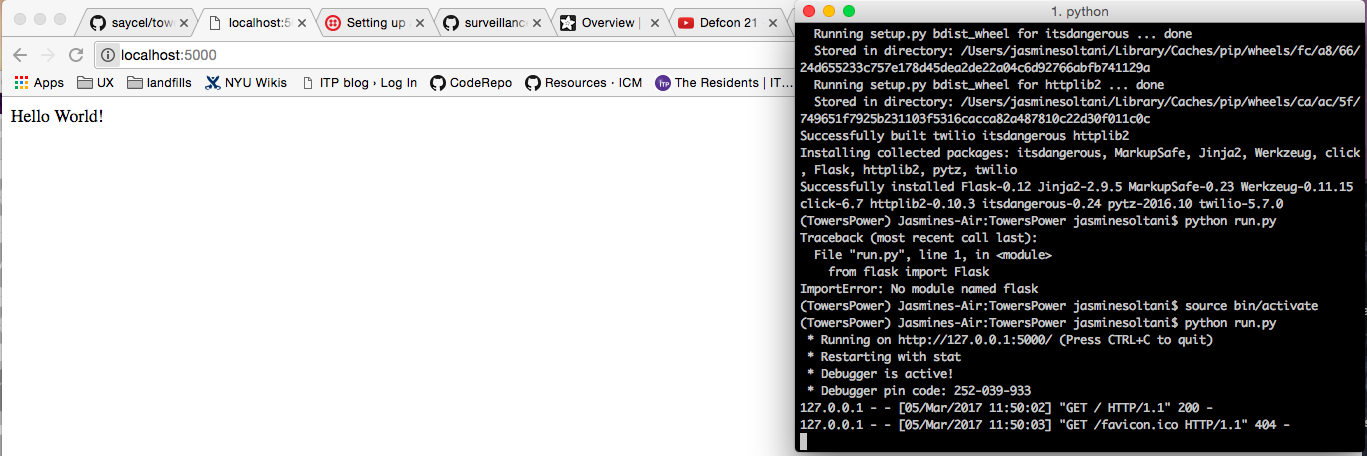 Used the virtualenv instructions from surveillance & society class last semester. I think Twilio’s documentation might be out of date. I started following their instructions at the requirements.txt section.