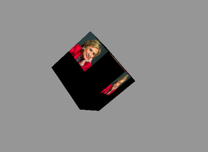 As a temporary solution to not being able to apply the photo booth picture as a texture, I thought it’d be funny to just default to Hillary Clinton’s face. This introduced a new problem: no matter what I did to adjust the size of the picture file or the size of the cube, I couldn’t get the picture to be applied to the entire side of the cube! Maybe there’s a way to stretch the image?
