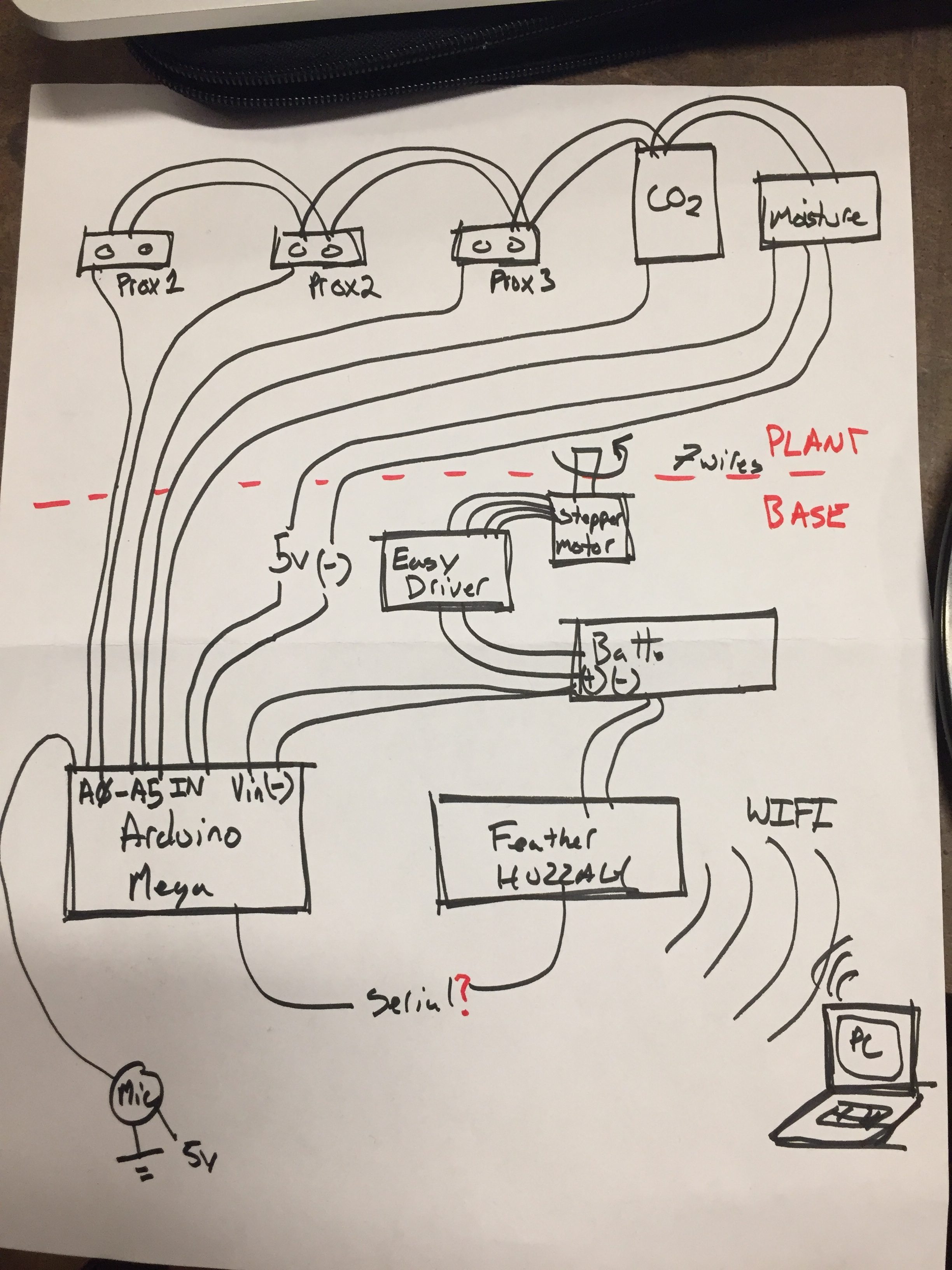 Aaron Parsekian helped us think through all of the elements we have discussed including the project and where they should go for the distance-sensing and plant movement interaction: